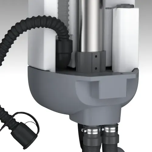 Der Pilot One verfügt über getrennte Tanks für Frischwasser und Abwasser, die nicht nur wassersparend, sondern auch benutzerfreundlich gestaltet sind. Sein integriertes Abflussrohr erleichtert zudem die Entleerung des Abwassertanks ohne manuelle Abnahme.
